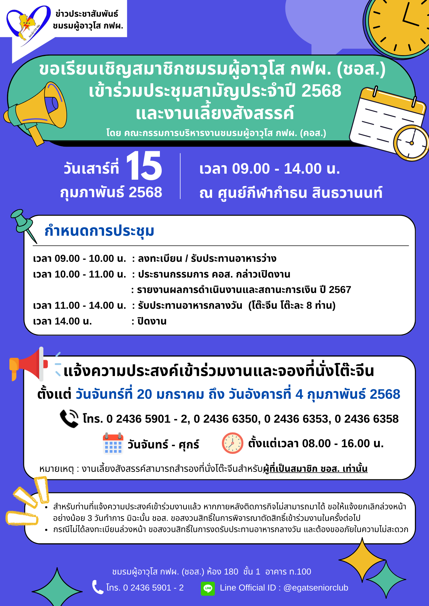 ข่าวประชาสัมพันธ์การเข้าร่วมประชุมสามัญประจำปี 2568 และงานเลี้ยงสังสรรค์